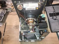 On powering it up, It originally greeted me with a checkerboard pattern that quickly converted into this pattern. The checkerboard pattern is/was commonly caused by bad Ram memory. Considering the age of this computer, leaking capacitors are a strong possibility. Time to check.