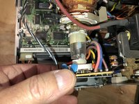 On powering it up, It originally greeted me with a checkerboard pattern that quickly converted into this pattern. The checkerboard pattern is/was commonly caused by bad Ram memory. Considering the age of this computer, leaking capacitors are a strong possibility. Time to check.