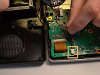 Remove the tape on the battery wires and the tape on the speaker wires.