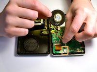 After the back has been removed, locate each of the screws securing the speaker to the inside of the back cover.