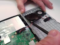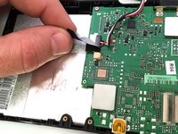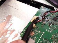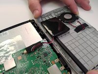 Pull the edge of the tape up to remove the tape that holds the battery wire to the motherboard.