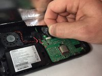 Use a Phillips #000 screwdriver to remove three 5mm screws that hold the motherboard down to the the back panel.