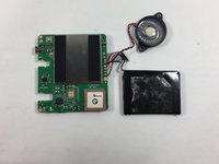 Lay the back panel on a flat surface with the battery, motherboard, and speaker facing up.