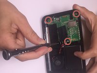 • Remove the motherboard from the device by unscrewing all three 4 mm screws that are connecting it to the casing with a Phillips Head screwdriver size 000.