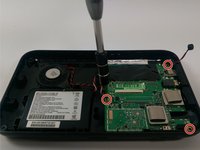 • Unscrew the three screws holding the motherboard and speakers in place. Use a size 0 phillips head screwdriver.