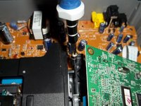 • Take out the two screws on either side of the green circuit board.