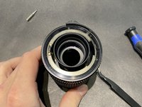 The lens group may require significant pressure to get the group to turn. It is tempting to use a lens spanner here, but this is not advised as it may cause the lens group to separate at the wrong point.