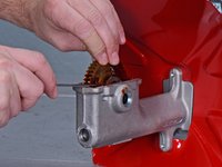Use a Phillips #2 screwdriver to remove the four screws securing the gear housing cover.
