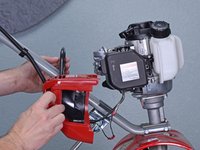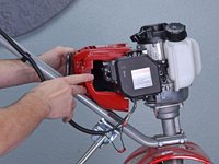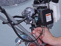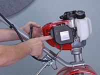 Un-clip the throttle cable from the cable clips on either side of the handle assembly and set the upper handle assembly aside.