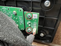 Use a Phillips screwdriver to remove the two 9.6 mm screws that secure the AUX board to the speaker frame.
