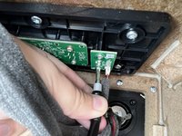 Disconnect the red and white cable connected to the AUX board by hand or with tweezers.