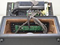 Carefully lift the rear panel and let it rest on an object, like a stack of books, to avoid straining the cables.