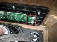 Locate the AUX board on the right-hand side, above the subwoofer.