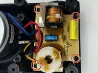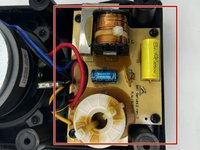 In order to access the tweeter, we must first remove the Crossover, which is highlighted in red.