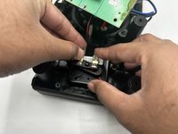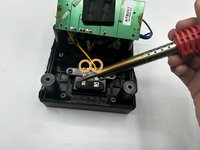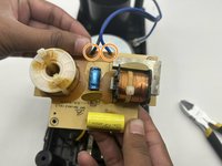 Using the soldering iron, desolder the connections on both the blue and black wires.