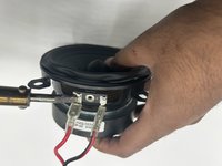 Remove both wires that are connecting the back of the speaker to the components of the speaker to fully access the speaker components.