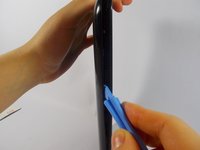 Pry the back plate open and slide the tool in a clockwise direction, moving it along the opening between the device and its back plate until you reach the power button.