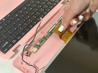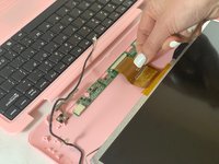 Use tweezers to gently pull on the black and white wires at the top of the netbook until the white connector detaches.