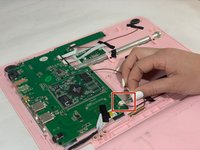 Pinch the red and black wires connected to the section closest to the small white connector, and pull to remove them from the motherboard.