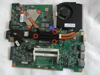Undo the single screw holding the motherboard.