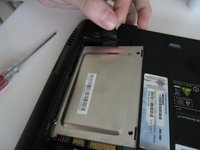 Undo the single screw holding the hard drive.