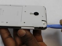 Insert the plastic opening tool in between the charging port and the back case of the device. Slowly move the tool to the left of the device until you come the top by the power button.