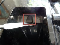 Ziehe eine Seite des Pulverfachdeckels aus dem Scharnier und löse den Deckel ab.