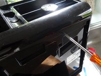 Im Pulverfach wird eine Gummiabdeckung sichtbar. Löse die Gummiabdeckung mit einem geeigneten Werkzeug ab.