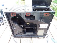 Drücke mit einem Flachschraubendreher oder einem Metallspatel gefühlvoll in die Schlitze in den beiden Seitenteilen, um die Rasten der Oberseite zu lösen. Diese sitzen sehr fest und du musst recht kräftig drücken.