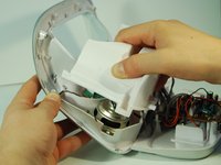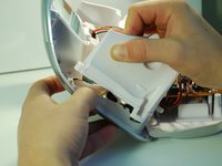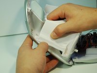 Remove the two plastic screw covers on the back of your Minimove by inserting the flat end of your plastic opening tool between the screw cover and the back panel and prying it out.