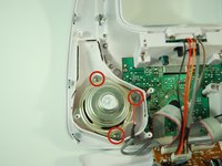 Unscrew the three 8 mm circled screws that are holding the speaker to the plastic casing.
