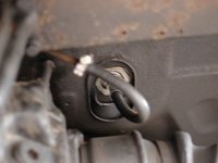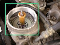 This pump has very dirty, old red automatic transmission fluid and is also low on fluid. The steering pump groaned and was hard to turn.