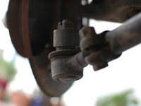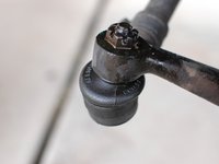 Check all four tie-rod ends for cracked or split boots. Both outer joints shown. Inner joints are at the other end of the tie-rod.