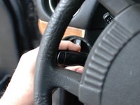 Move the combination switch up and down, for right and left turn signals respectively, and then push it away from you for high-beams. It should firmly move in to each position and stay there without any slop. Then pull it towards you for high-beam flash; it should spring back to the center position when you let it go.