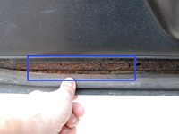 Check for rust at the bottom of the inside of each door, you may need to push the trim out of the way