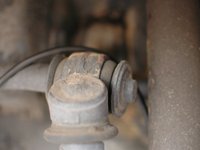 Check the various other rubber boots, bushings, etc. on the front steering and suspension for cracks, splits, dry-rotting, etc.