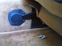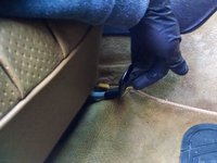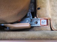 Next, return to behind the seat and find the seat rail at the point where it attaches to the raised tunnel between the rear foot wells.