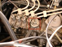 Go slowly with this and be careful to not drop the nuts or clamp pieces as they can fall behind the injection pump. It's not impossible to get them out, but it can be difficult.