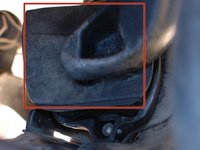 • The inboard ones, those closest to the engine, need to be removed from below the car with a 6mm allen key. These are difficult to see, much less take a picture of, but can be removed by feel fairly easily. They can be found almost directly below the metal arm that comes off the engine that attaches to the top of each mount.