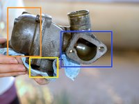 While you have the housing out of the car, consider cleaning any deposits from the three hose necks with a very fine grit sandpaper. Something 300 grit or finer is preferable. Do not use a heavy grit or you will score the metal.