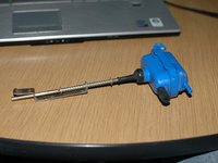 Finally, pull the metal armature of the actuator off of the lock mechanism. It pulls off in the direction of the vacuum actuator body.