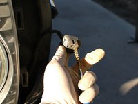 Begin by removing the white plastic thumb screw that holds the turn signal to the body of the car.