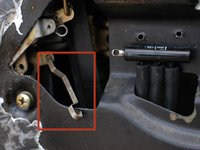 With the carpets removed, look along the end of the foot well nearest the driver's door and find the black plastic cover that protects the vacuum lines beneath. Lift this cover up as shown to expose the vacuum lines.