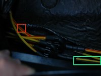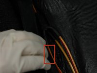 As mentioned, the red lines are the lines for the lock side of the circuit. The highlighted line is the one that enters the car from inside the door. Note - the top of the picture is facing the front of the car. This line connects to the switch and is the one that you plugged in the previous step.