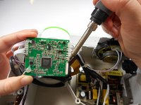 Once connections are soldered off, the motherboard should be detached and ready for replacement.