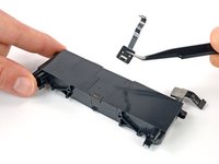 Grasp the top left camera cable with tweezers and slide it out of its ZIF connector.