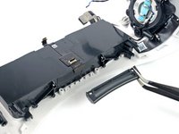 The battery is positioned above the screen and lens assembly and requires significant disassembly in order to reach it.