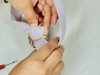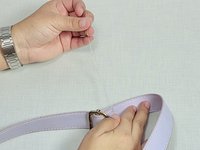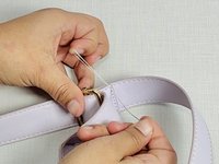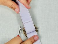 Locate the thread on the strap holding the metal clasp together.
