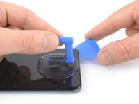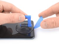 Once the screen is warm to the touch, apply a suction cup to the bottom edge of the phone.