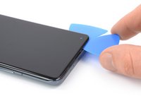 Slide the opening pick to the bottom right corner of the screen to slice its adhesive. Leave the opening pick in place to prevent the adhesive from resealing.